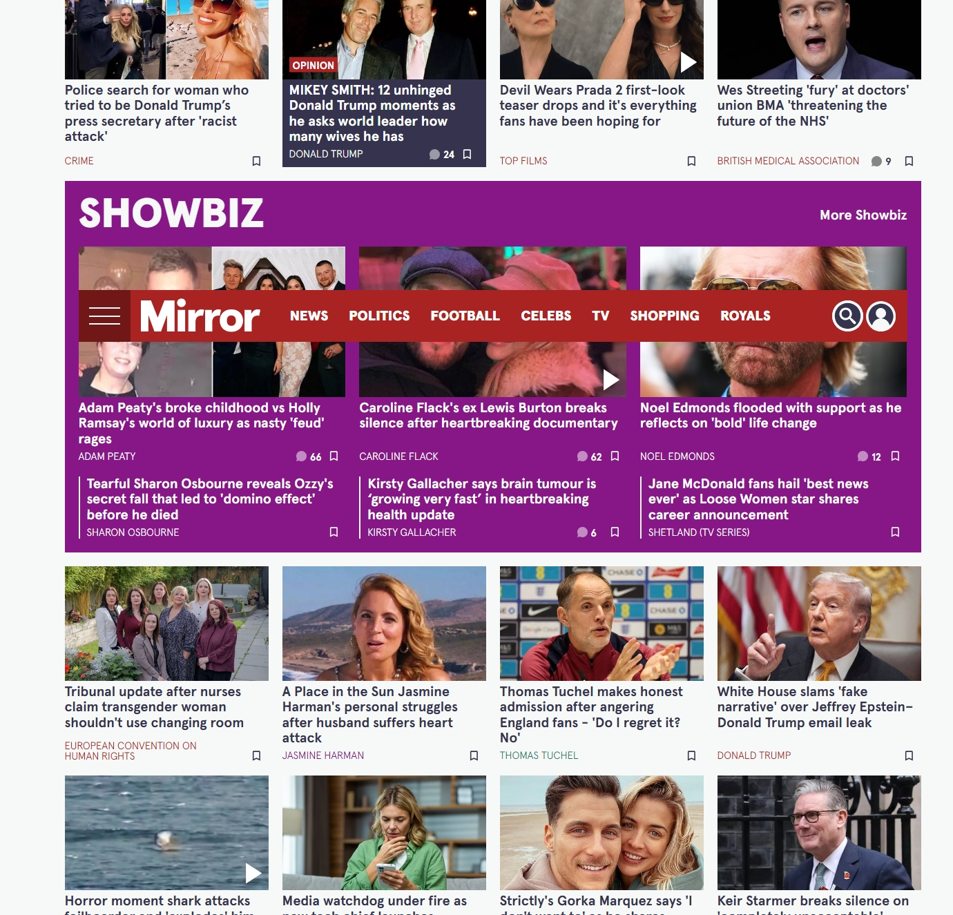 Daily Mail 提供了一个全方位的新闻平台,涵盖国内外新闻、娱乐圈动态、时事政治以及生活方式等内容。网站首页通过清晰的模块展示了各类新闻,包括娱乐新闻、政治事件、社会问题等。尤其在娱乐新闻和名人八卦方面,Daily Mail 提供了大量的独家报道和精彩图片,吸引了大量的读者。此外,网站通过视频内容和社交互动增强了新闻的呈现方式,使得新闻更加生动和互动。整体设计简洁易用,确保用户能够方便地浏览内容。